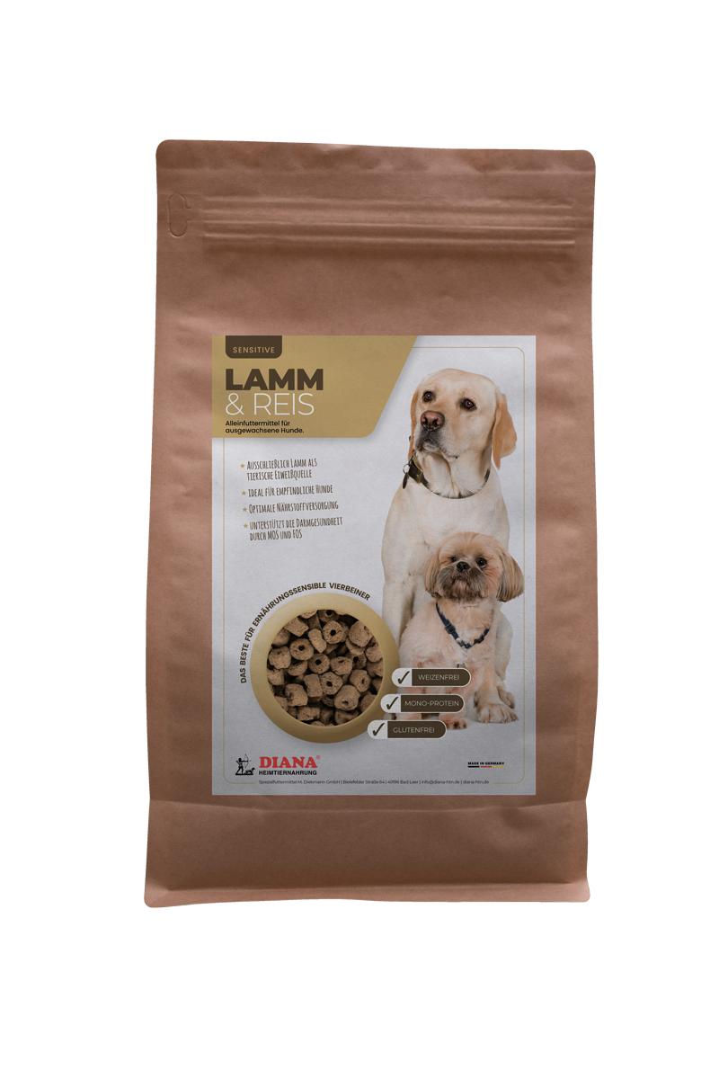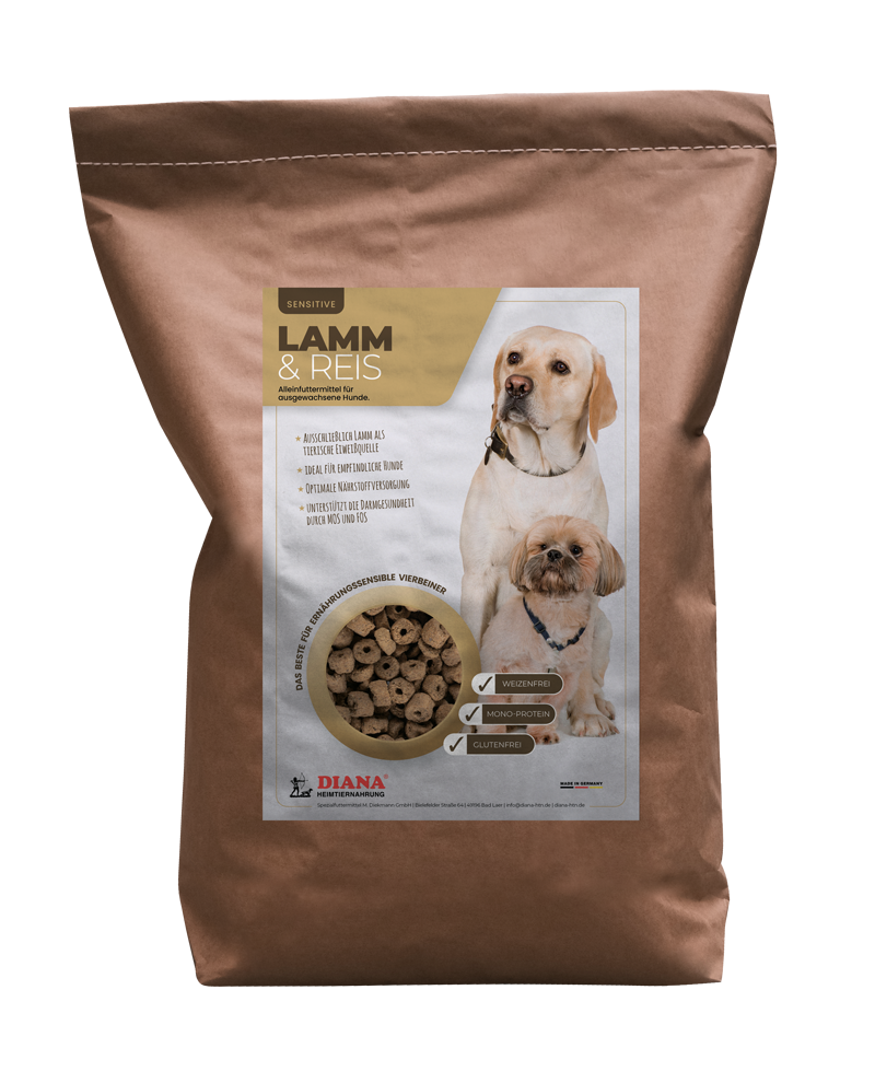 Entdecken Sie DIANA Lamm & Reis, das ideale Trockenfutter für ernährungssensible Hunde. Diese speziell entwickelte Rezeptur enthält nur eine tierische Eiweißquelle – hochwertiges Lammfleischmehl – und ist somit perfekt für Hunde mit empfindlicher Verdauung oder Unverträglichkeiten. Dank des Verzichts auf glutenhaltige Getreide ist dieses Futter besonders magenschonend und leicht verdaulich. Sorgen Sie für das Wohlbefinden Ihres treuen Begleiters mit DIANA Lamm und Reis. Es bietet eine optimale Kombination aus Geschmack und Nährstoffen, die selbst den wählerischsten Hund zufriedenstellt.