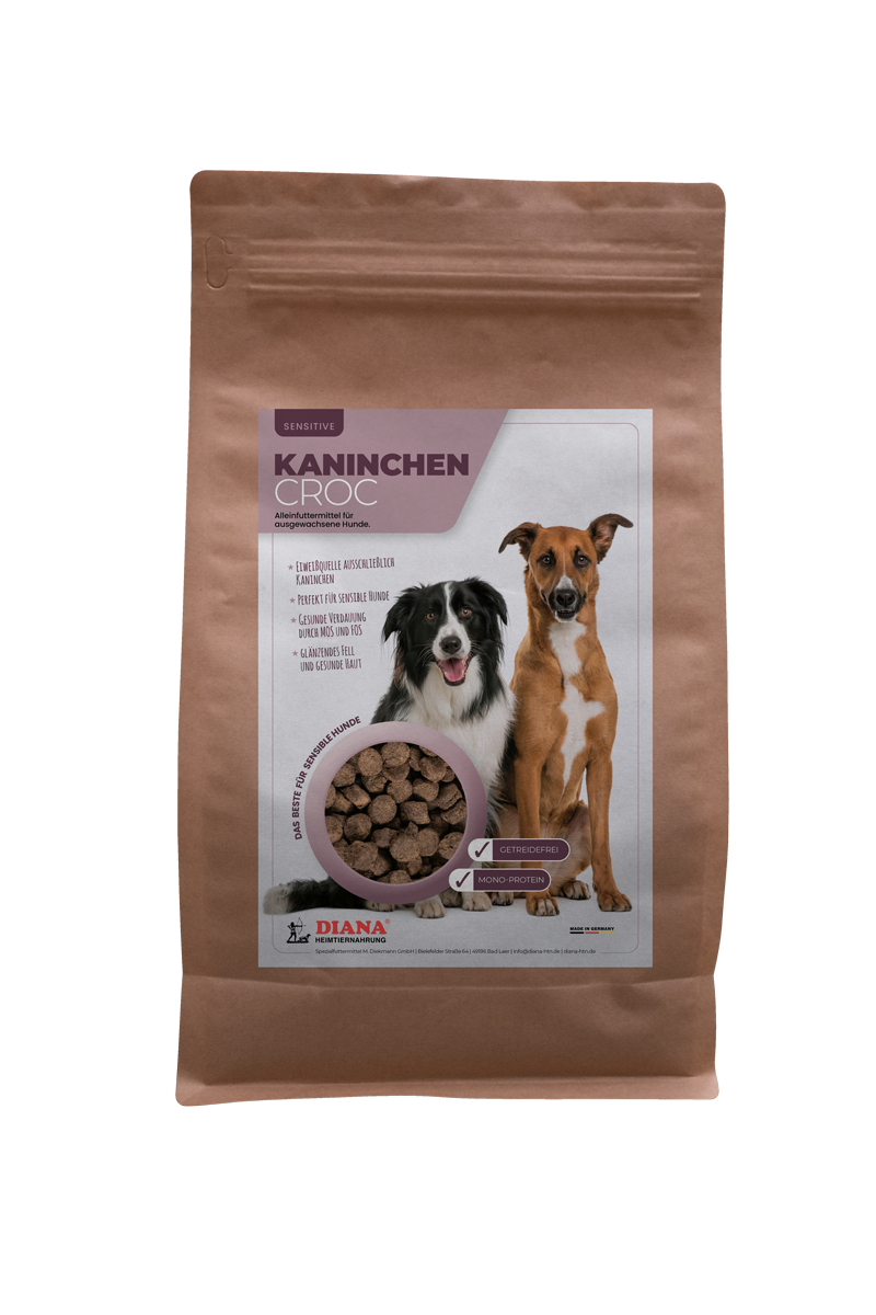 DIANA Kaninchen Croc Hypoallergen ist eine hypoallergene getreide- und glutenfreie Vollnahrung für alle Hunderassen. Dies gibt Ihnen die Möglichkeit für eine alternative Ernährung von Hunden, die auf Getreide und Gluten negativ reagieren. Außerdem enthält DIANA Kaninchen Croc Hypoallergen als Fleischanteil ausschließlich Kaninchenfleischmehl. Damit lassen sich Probleme mit anderen tierischen Proteinen vermeiden. Die vielseitige Zusammensetzung sorgt für eine ausgewogene Ernährung.